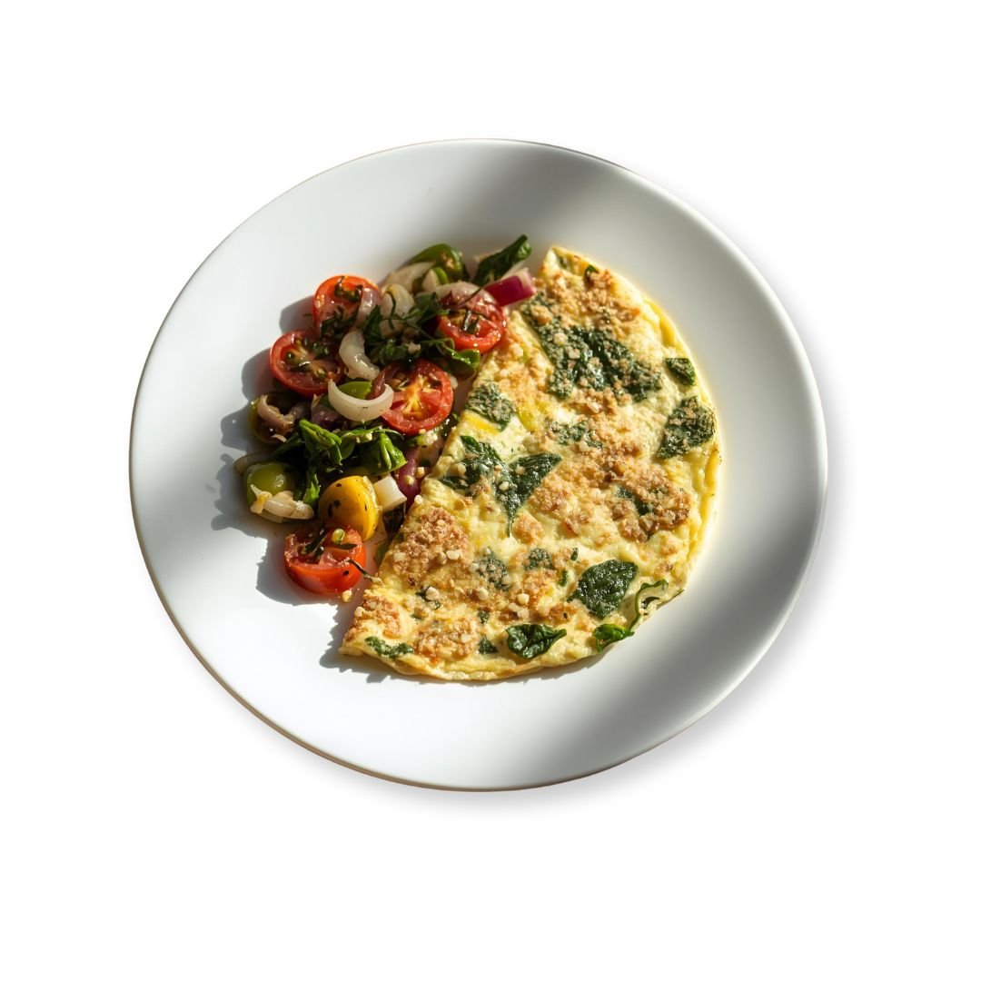 • Fluffy egg whites cooked with spinach, tomato, onions, and green peppers.